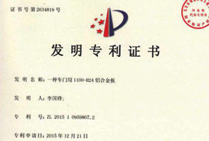 • 汽車用鋁專利證書